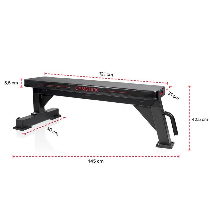 Gymstick Flat Bench Pro tasapenkki on tukeva ja erittäin jämäkkä, joten se soveltuu hyvin kuntosalikäyttöön käyttöön. Istuinosan koko on 31 x 121cm.